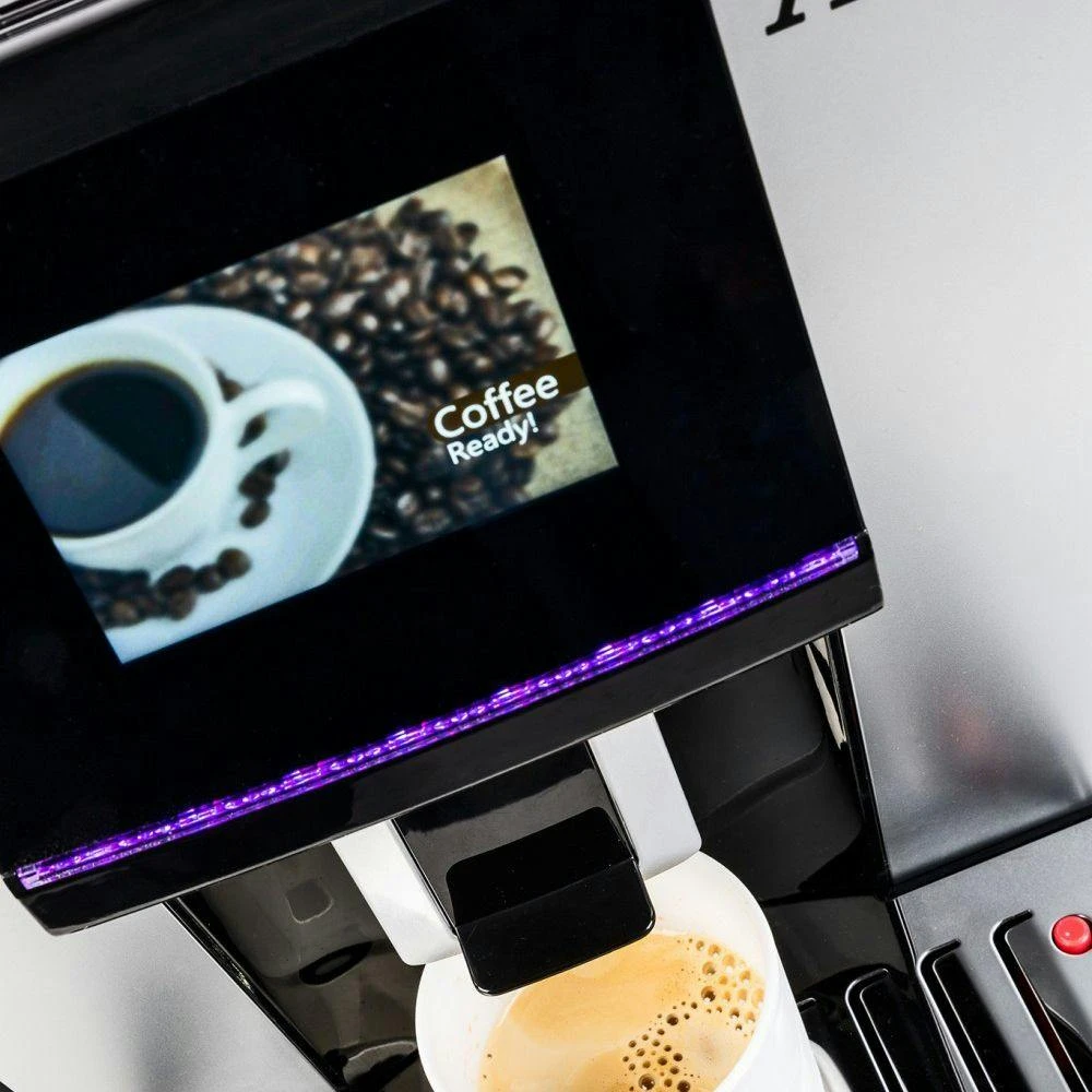 Acopino Vittoria. Produkttyp: Espressomaschine, Kaffeezubereitungstyp: Vollautomatisch, Fassungsvermögen Wassertank: 1,7 l, Kaffee-Einfüllart: Kaffeebohnen, Gemahlener Kaffee, Behälter für gebrühten Kaffee: Tasse, Kapazität (in Tassen): 6 Tassen, Eingebautes Mahlwerk. Display-Typ: LCD. Leistung: 1500 W. Produktfarbe: Schwarz, Silber