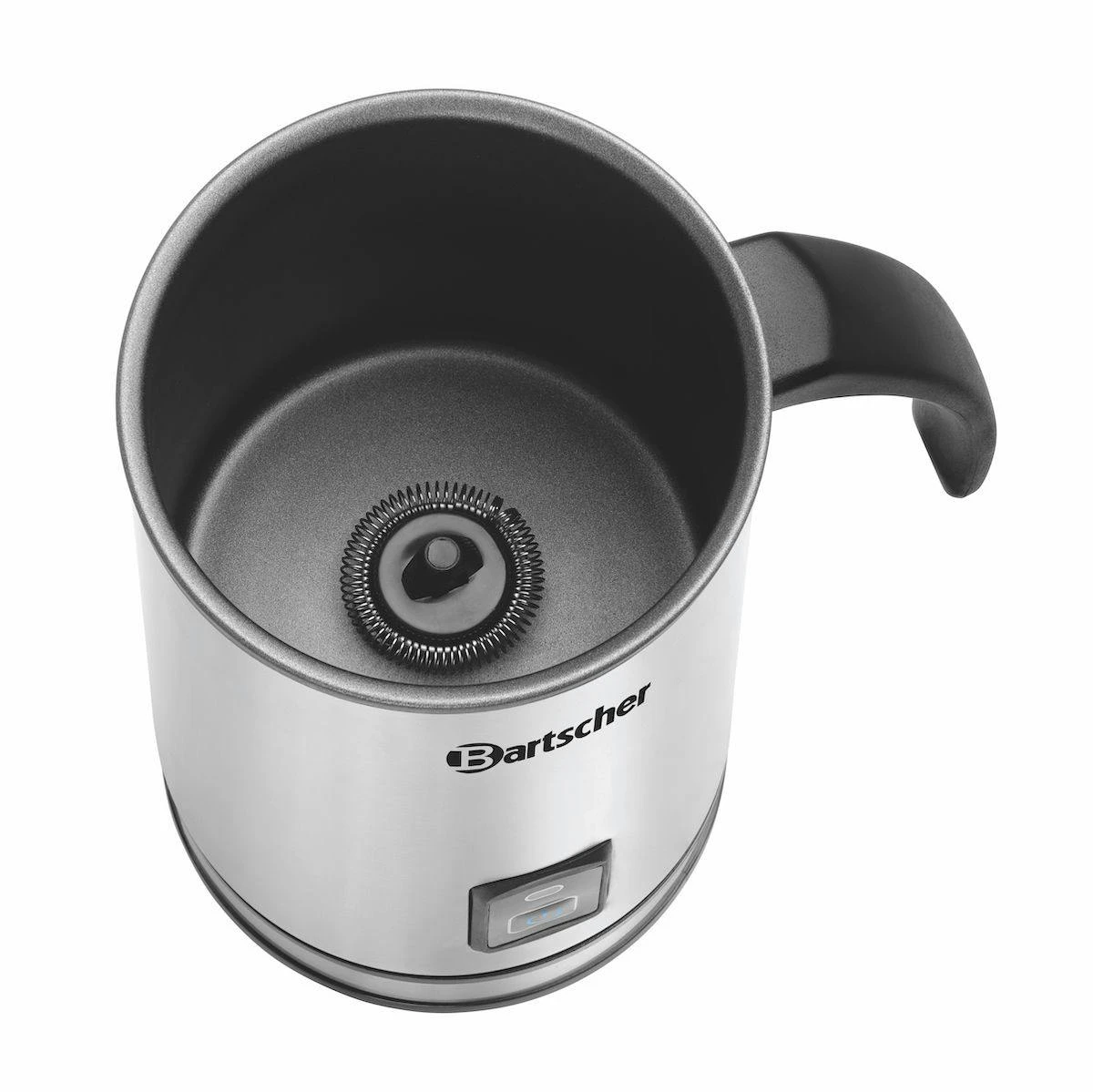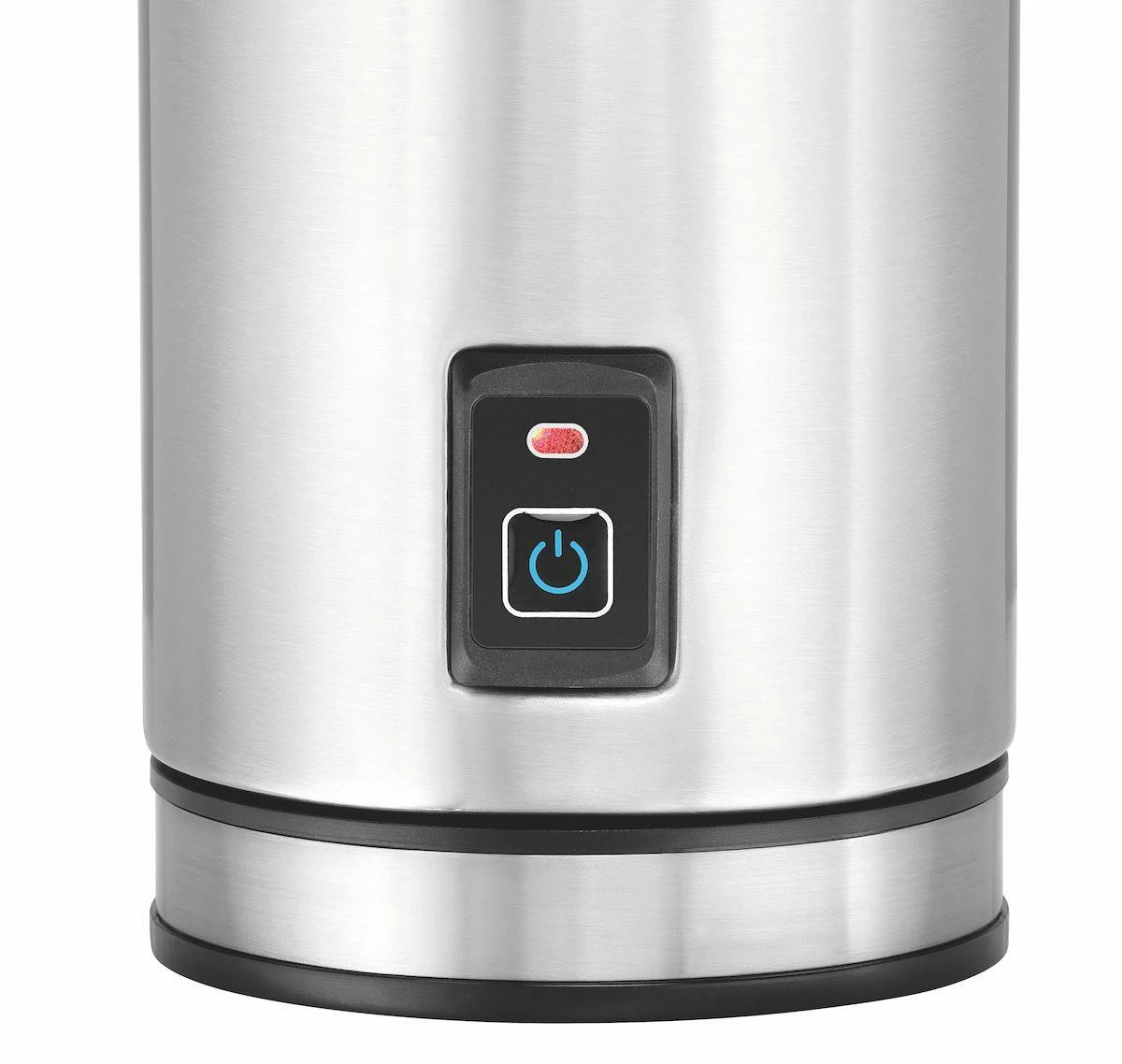 Höhe (mm): 190Breite (mm): 150Tiefe (mm): 108Netto-Gewicht (kg): 0,8Brutto-Gewicht (kg): 1Funktionen: Aufschäumen/Erhitzen bei 70 °C Spannung: 230 V Steuerung: Elektronisch ,Knopf Kontrollleuchte: In Betrieb Eigenschaften: Für frische Milch in allen Fettstufen ,Kein Vorwärmen der Milch nötig ,Halterung für Mixscheibe und Milchschaumfederring am Deckel Inhalt: 0,6 LiterEin-Schalter: Ja Automatische Abschaltung: Ja Temperaturbereich bis: 70 °CFüllmenge: Aufschäumen, max.: 150 ml ,Erhitzen, max.: 400 ml Rührbehälter: Abnehmbar ,Kunststoff mit Edelstahlbeschichtung und Kunststoffdeckel ,Teflonbeschichtet Inklusive: 1 Mixscheibe ,1 Milchschaumfederring Farbe: Silber ,Schwarz Ausführung: Elektro Material: Edelstahl ,Kunststoff Temperaturbereich von: 0 °CFrequenz: 50/60 Hz Anschlusswert: 0,5 kWWichtiger Hinweis: –