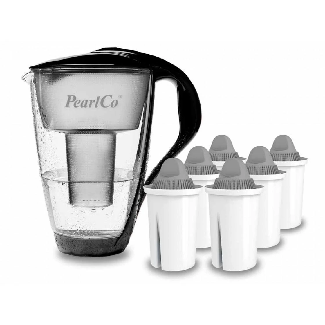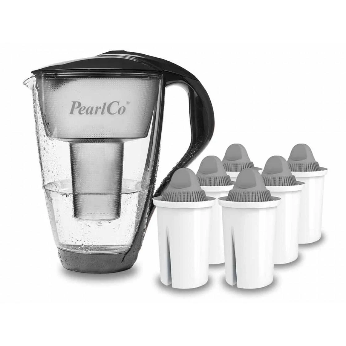 Ökologisch Vermeidung von Plastikmüll Sparsam Verzichten Sie auf Plastikflaschen Reiner Geschmack Speisen und Getränke entfalten ihr volles Aroma Der PearlCo Glas-Wasserfilter Der getestete PearlCo Glas-Wasserfilter ist aus hochwertigem Borosilikatglas (ISO3585) Marke Simax gefertigt, das sich unter anderem durch seine hohe thermische und chemische Beständigkeit auszeichnet. Eine in den Deckel des Wasserfilters integrierte LED zeigt an, wann Sie die Filterkartusche wechseln sollten. Leuchtet die LED blau, ist die Filterkartusche einsatzbereit. Leuchtet die LED rot, sollte die Kartusche gewechselt werden. Das moderne, klare Design des Wasserfilters fügt sich harmonisch in jede Umgebung ein. Seine ergonomische Form sorgt für eine komfortable, einfache Handhabung. Die spezielle, rutschfeste Konstruktion der Bodenplatte garantiert einen sicheren und stabilen Stand. Protect+ Filterkartusche Classic PearlCo Protect+ Filterkartuschen enthalten einen höheren Anteil des für die Kalkreduzierung zuständigen Ionentauschers. Auf diese Weise kann auch das Trinkwasser aus Gebieten sehr hoher Wasserhärte problemlos für feinste Teesorten, hochwertigen Kaffee und viele andere, besonders geschmackssensitive Getränke verwendet werden. Die hohe Entkalkungs-Leistung der Protect+ Filterkartusche sorgt für einen zuverlässigen Schutz gegen das bei hoher Wasserhärte typische, schnelle Verkalken von Kaffeemaschinen, Wasserkochern und ähnlichen Haushaltsgeräten. Universal vielseitig einsetzbar Protect+ bei sehr hartem Wasser AquaMag extra Magnesium Alkaline erhöht den pH-Wert Mehr ausgewählt Mehr Mehr Kapazität je nach Wasserhärte bis 150 Liter bis 150 Liter bis 150 Liter bis 150 Liter Verwendung Zum Kochen, für Heiß- und Kaltgetränke Zum Kochen, für Heiß- und Kaltgetränke Kaltgetränke oder einfach pur Einfach pur, basische Ernährung Reduziert Kalk ++ +++ + – Reduziert organische Stoffe Entfernt Chlor Gegen Blei u.a. Schwermetalle Für Sprudler geeignet – Auf einen Blick Universelle, preisgünstige Filterkartusche Wirksame Entkalkung auch in Gegenden mit sehr hartem Wasser Für besten Geschmack und ein Plus an Magnesium Hebt den pH-Wert des Wassers an, unterstützt eine sanfte Ernährungsweise